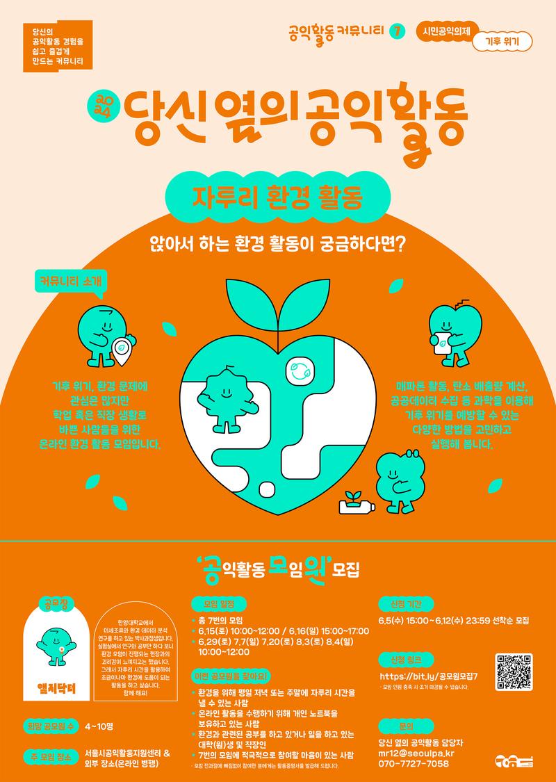 - 기후 위기, 환경 문제에 관심은 많지만 학업 혹은 직장 생활로 바쁜 사람들을 위한 온라인 환경 활동 모임입니다.