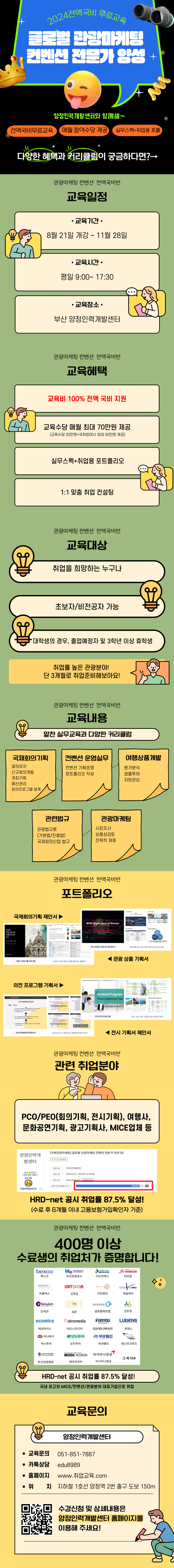 - 관광마케팅/국제회의·컨벤션/여행상품개발 등 실무 위주의 교육+취업용 포트폴리오 제작!