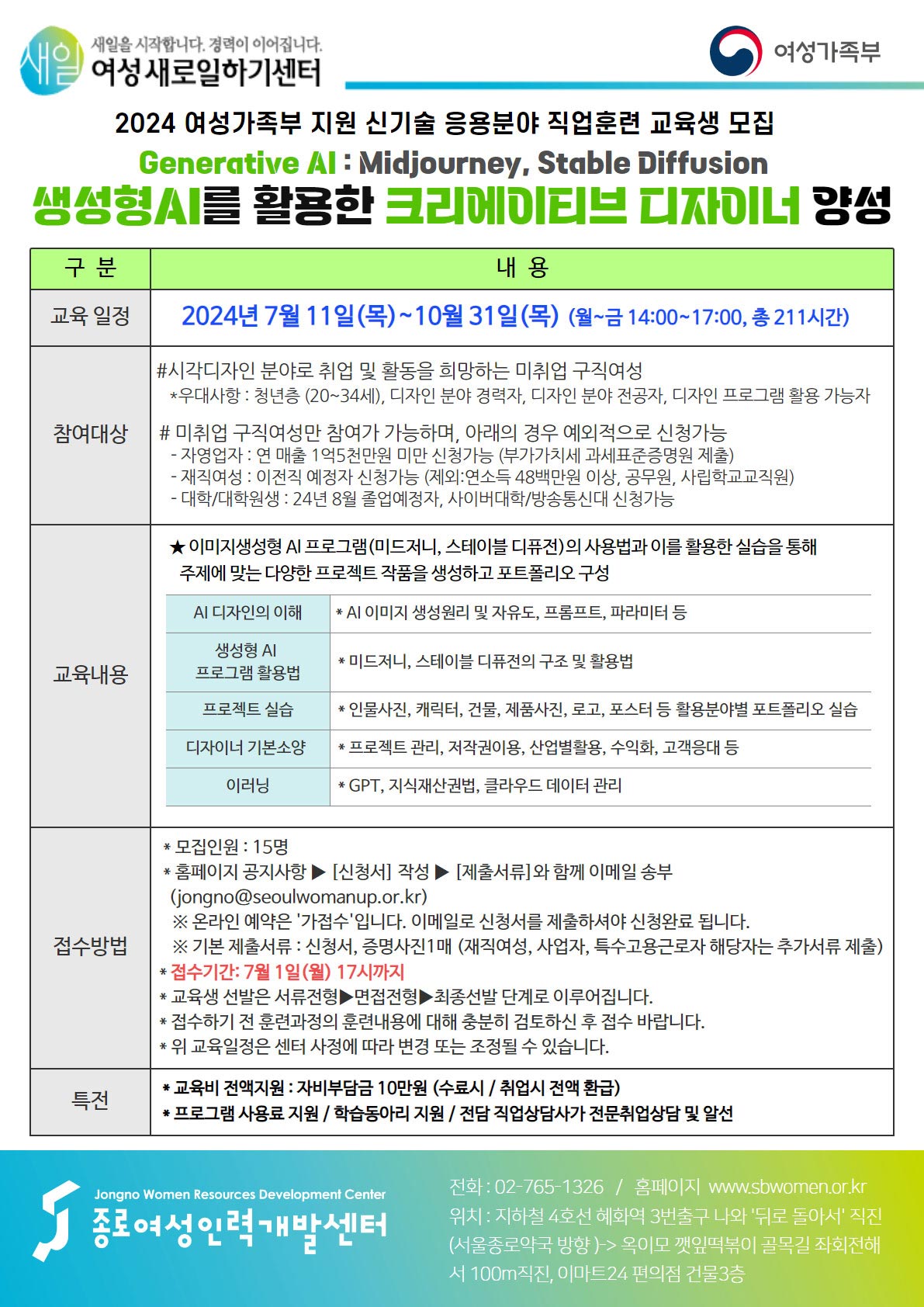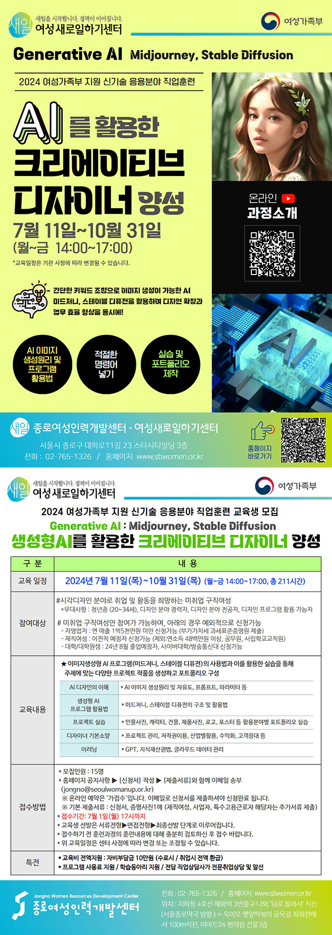 ‘생성형 AI를 활용한 크리에이티브 디자이너 양성’ 과정 교육생을 모집합니다!~