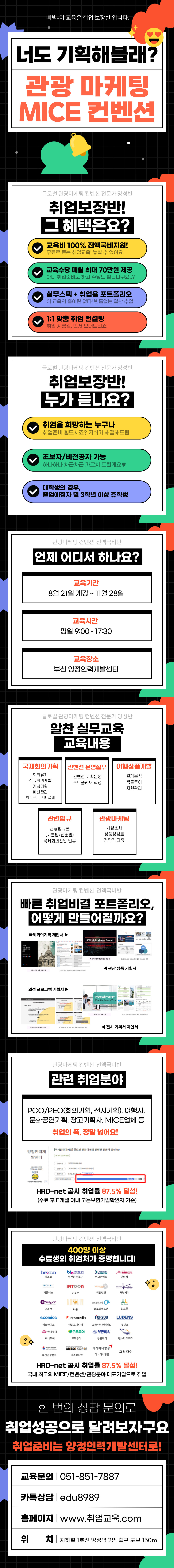- 관광마케팅/국제회의·컨벤션/여행상품개발 등 실무 위주의 교육+취업용 포트폴리오 제작!