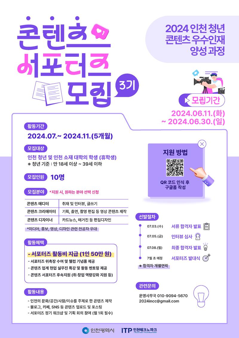 [2024 청년 콘텐츠 우수인재 양성 콘텐츠 서포터즈 3기 모집]