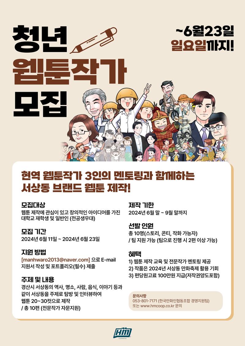 7) 문의사항 : 053-801-7171(한국만화인협동조합 경영지원팀)또는 www.hmcoop.co.kr문의