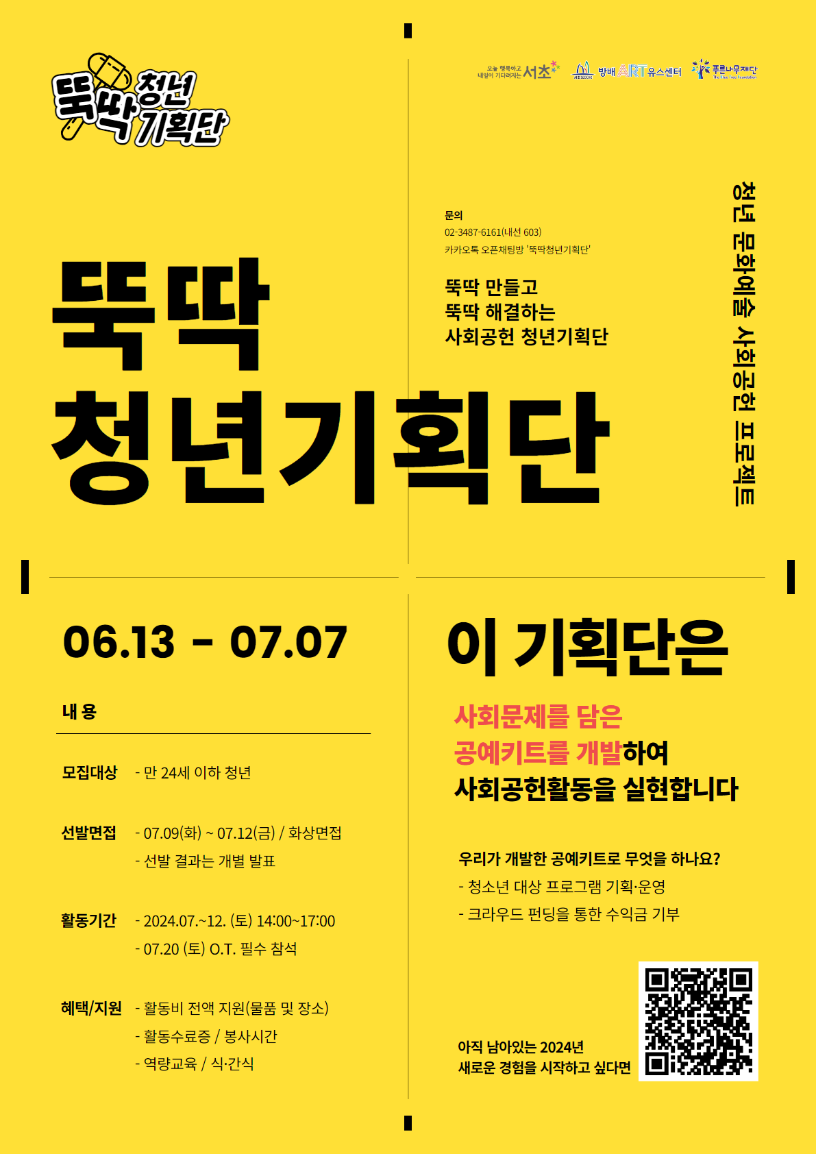 - 문화예술과 접목한 사회공헌활동을 실천하기 위해 창단한 방배ART유스센터 소속 청년기획단으로