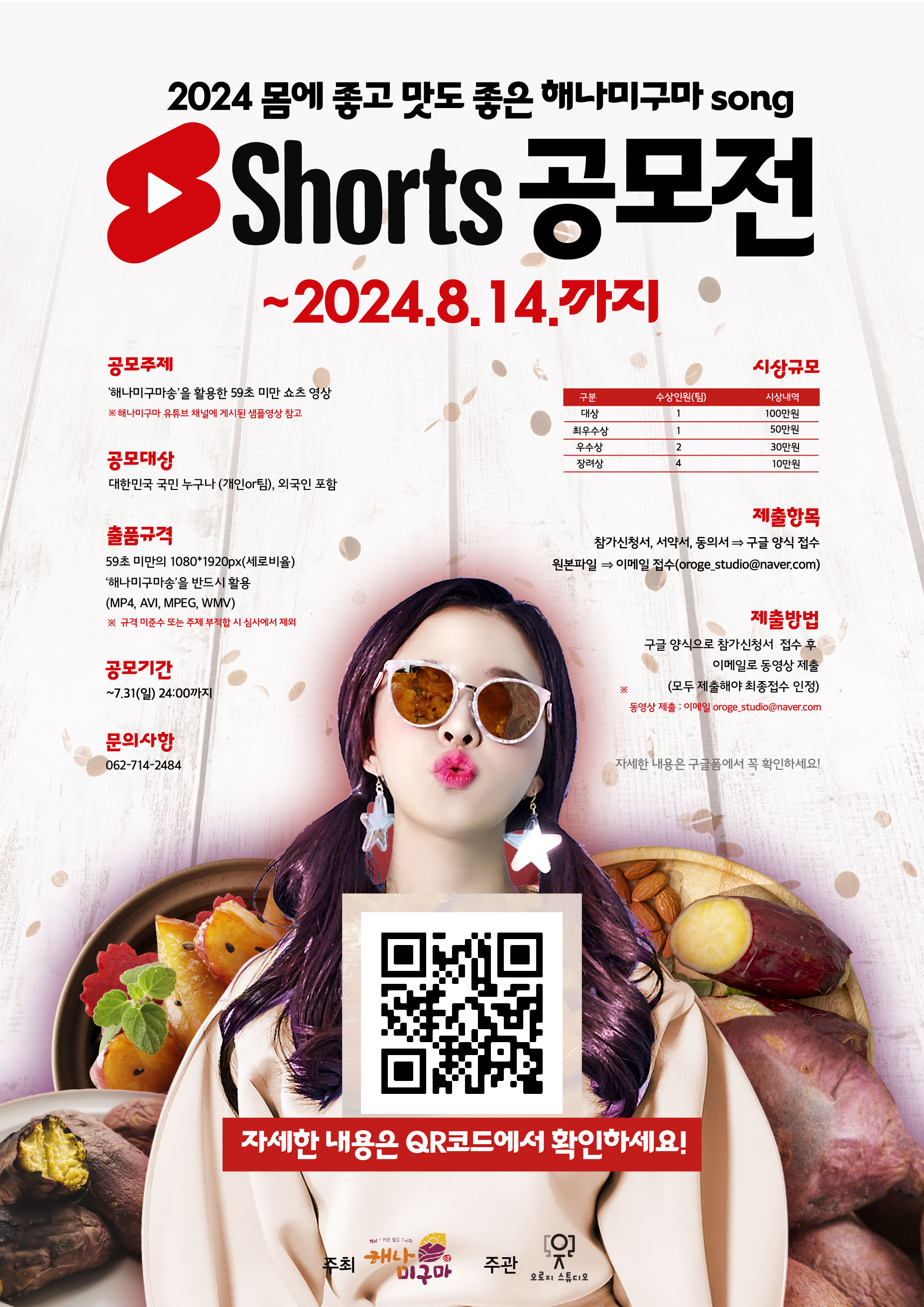 ○ 공모주제: '몸에 좋고 맛도 좋은 해나미구마 SONG 음악을 이용한 59초 미만 유튜브 쇼츠 영상