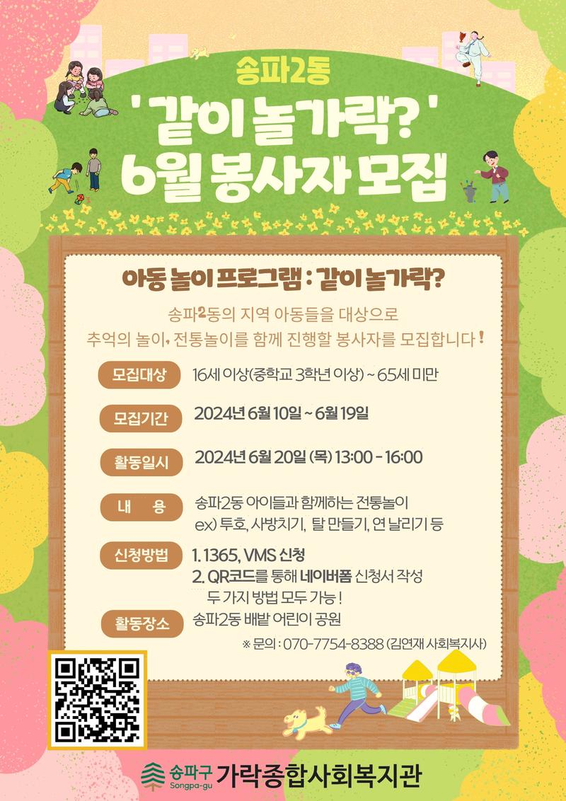 ★2024년 아동놀이프로그램 '같이 놀가락?' 6월 봉사자 모집★