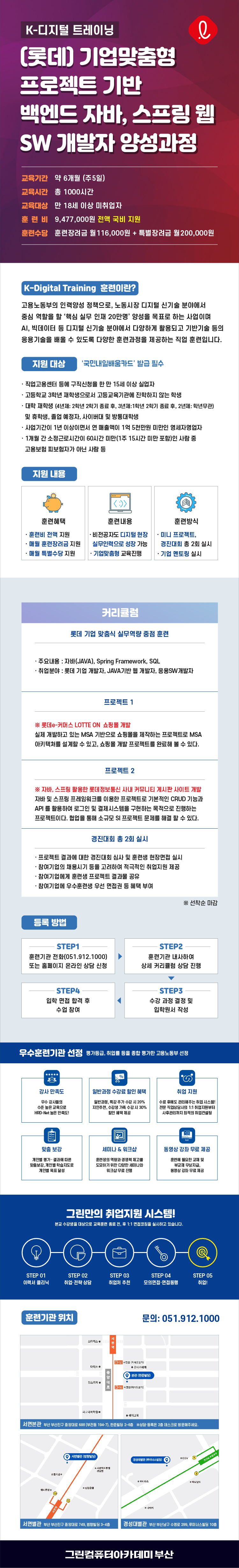■ 과정명 : [K디지털트레이닝] (롯데)기업맞춤형 프로젝트 기반 백엔드 자바, 스프링 웹 SW개발자 양성과정