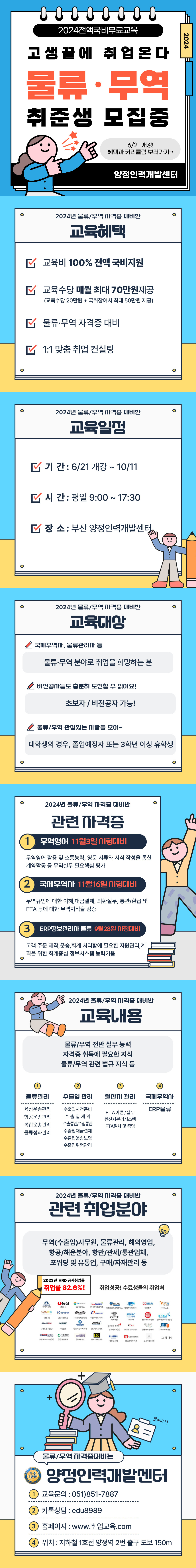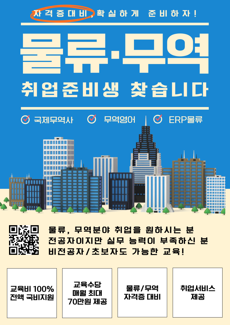 [고용노동부] 부산/전액국비/물류·무역 자격증대비 교육생 모집