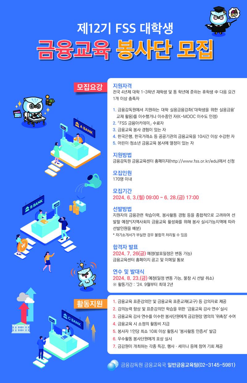 □(선발기준) 금융 관련 학습 이력, 금융교육 봉사 경험, 금융교육 봉사에 대한 열의(자기소개서) 등을 종합적으로 심사합니다.