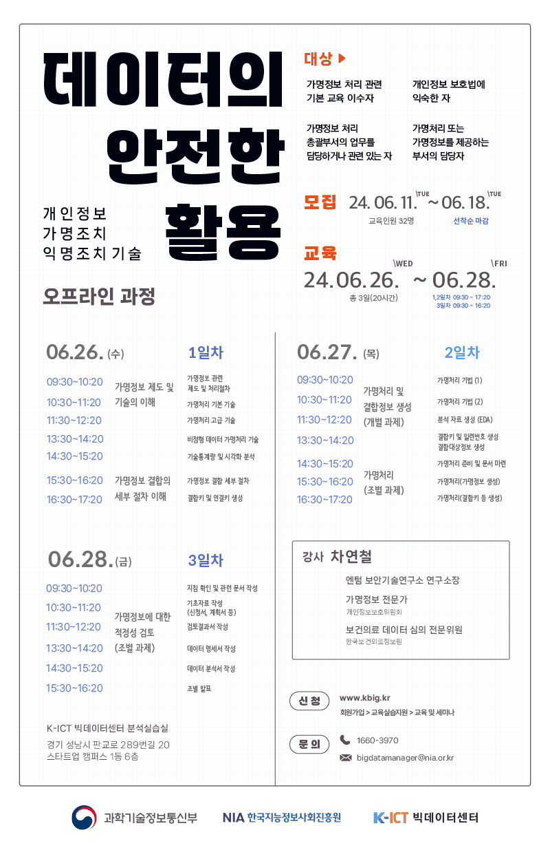교육 : 24.06.26.(수) ~ 06.28.(금) 총 3일(20시간)