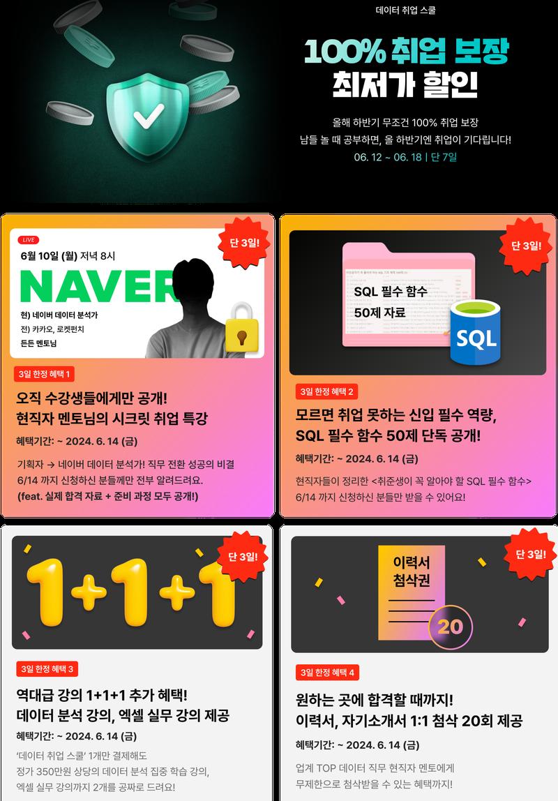 [최저가 + 100% 취업보장! 3일 한정 특별 혜택 (~6/14 까지 신청 시)]