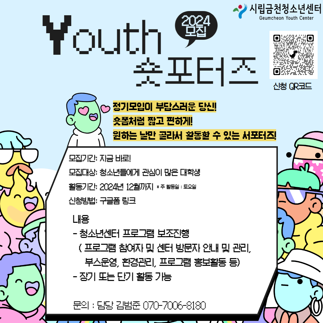 - 활동문의: 시립금천청소년센터 김범준 선생님(070-7006-8180)