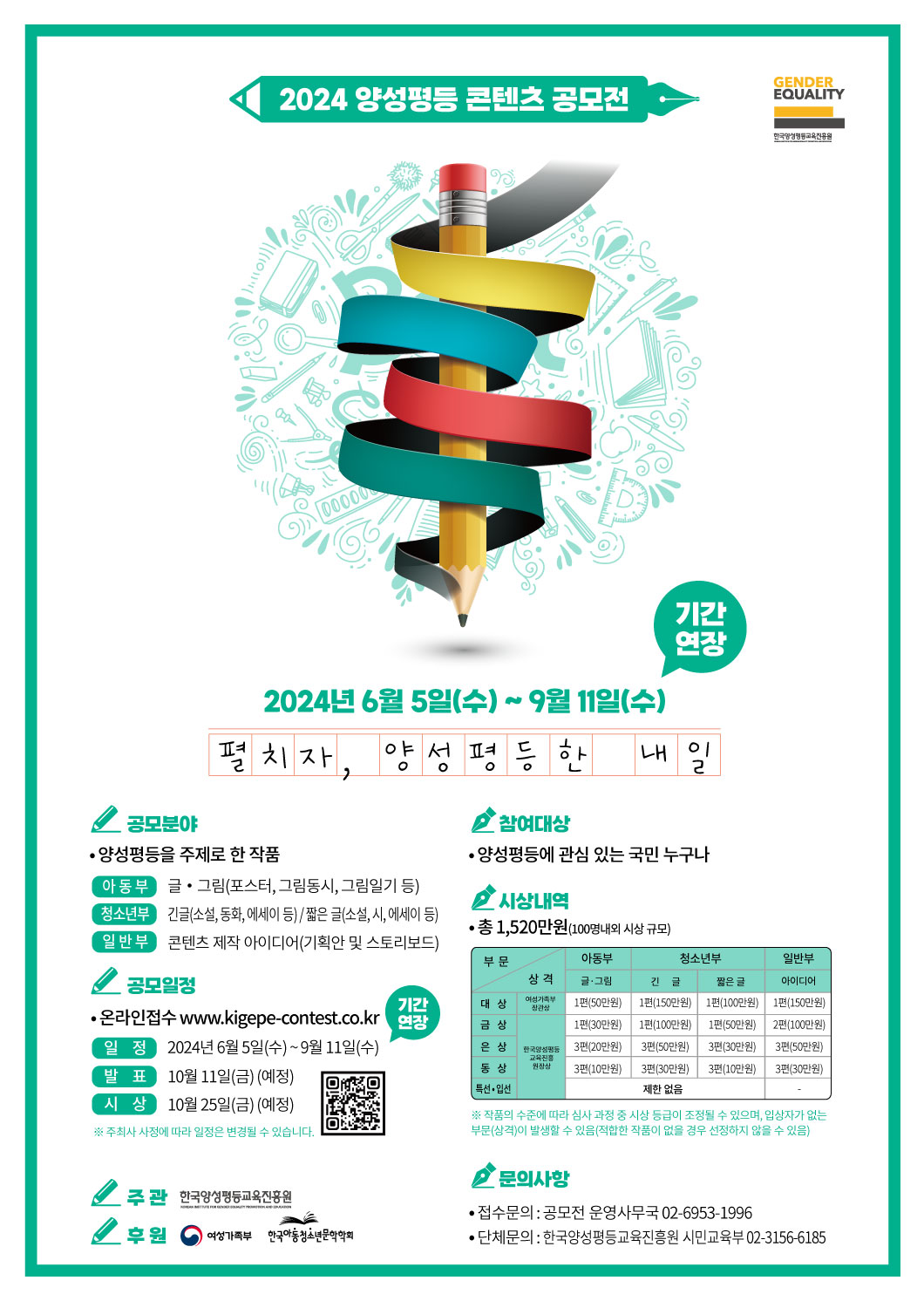 - 단체 접수 및 내용 문의 : 한국양성평등교육진흥원 공모전 담당자