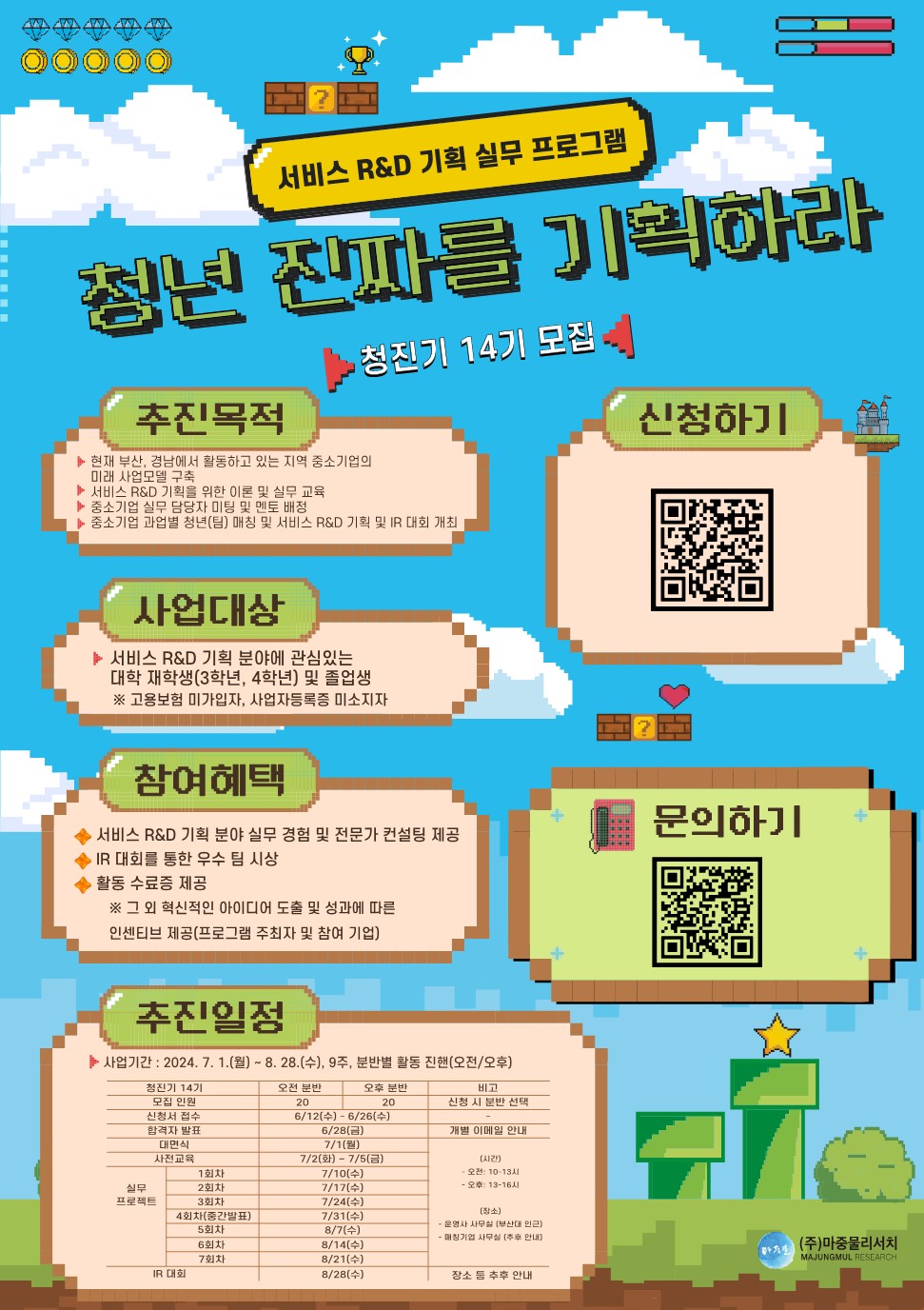 - 중소기업 과업별 청년(팀) 매칭 및 서비스 R&D 기획 및 IR 대회 개최