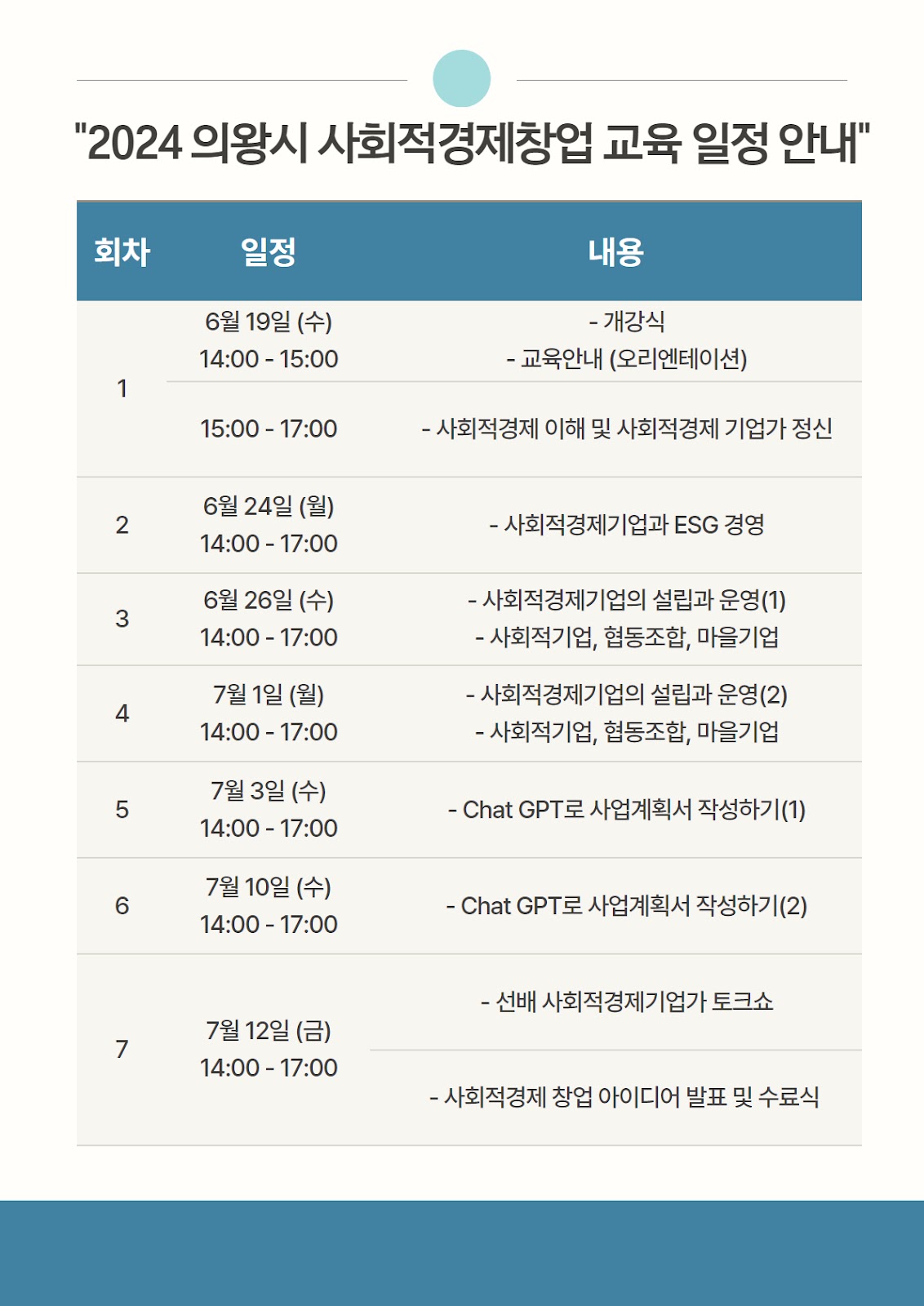 교육 기간 : 2024.06.19(수) ~ 07.12(금) 14:00-17:00