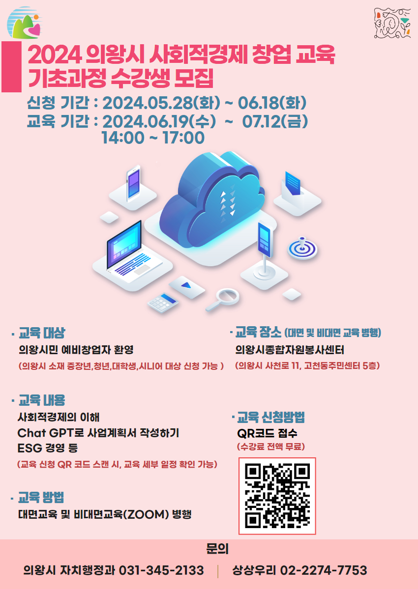 교육 장소 : 의왕시종합자원봉사센터(의왕시 사천로 11 고천동주민센터 5층)