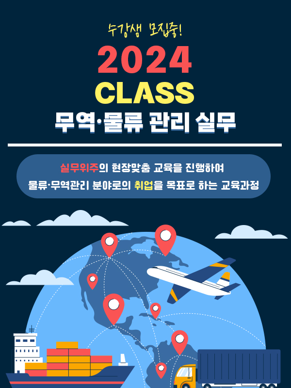 ✔ 교육 목표 : 실무위주 현장맞춤 교육으로 물류무역 분야 실무자로서 취업, 현장업무 처리할 수 있는 능력 향상, 관련 자격증 취득으로 스펙업 !