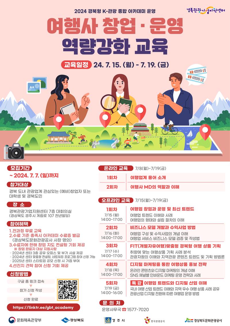 2024 경북형 K-관광 종합 아카데미_여행사 창업, 운영 역량강화 교육생 모집(~7/7)