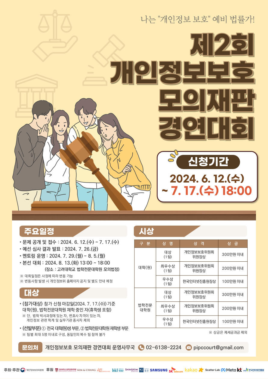 개인정보보호 모의재판 경연대회 운영사무국 (☏ 02-6138-2224, ✉ pipccourt@gmail.com)