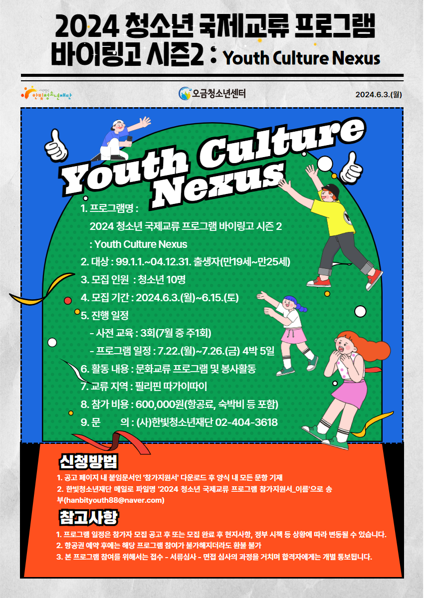 (사)한빛청소년재단 2024 국제교류 프로그램 바이링고 시즌2 : Youth Culture Nexus