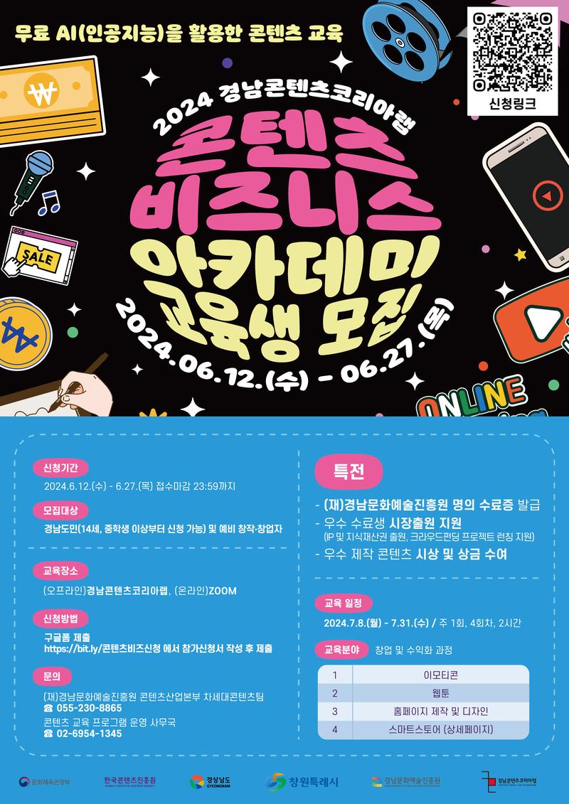 경남콘텐츠코리아랩에서 창업 및 수익화·시장진출 관련 콘텐츠 교육 프로그램을 실시합니다!