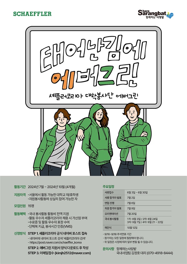 셰플러코리아 대학생 봉사단 EVERGREEN 11기에 도전하세요:)