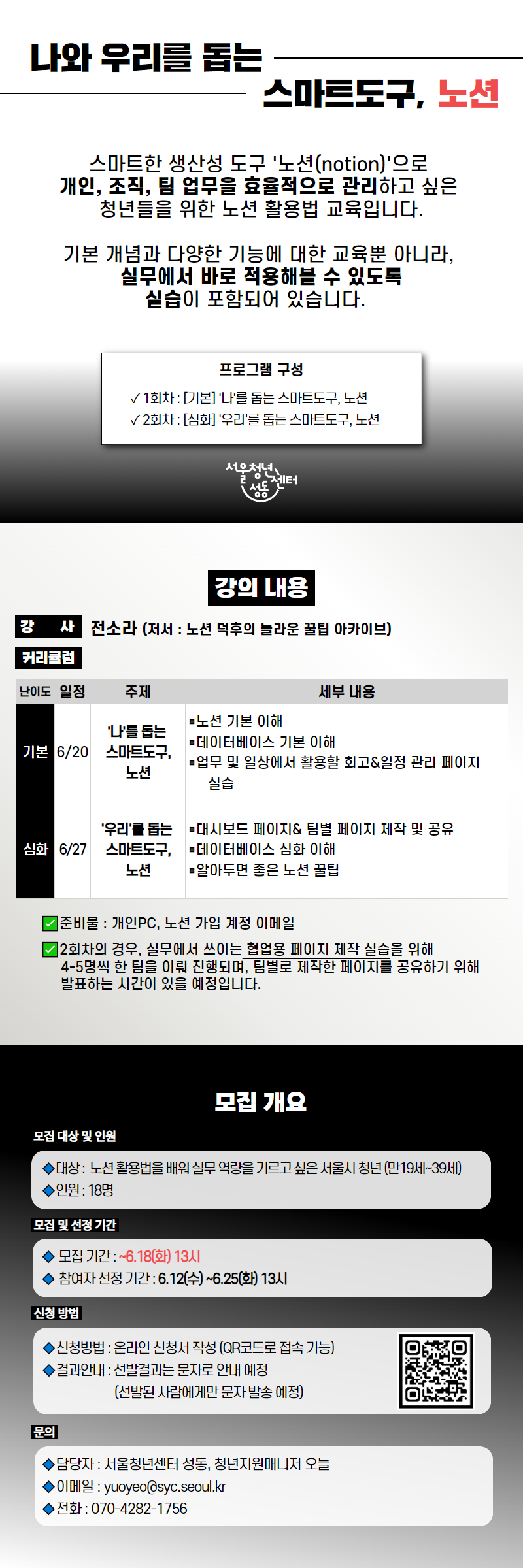 - 노션 활용법을 배워 실무 역량을 기르고 싶은 서울시 청년 (만19세~39세)