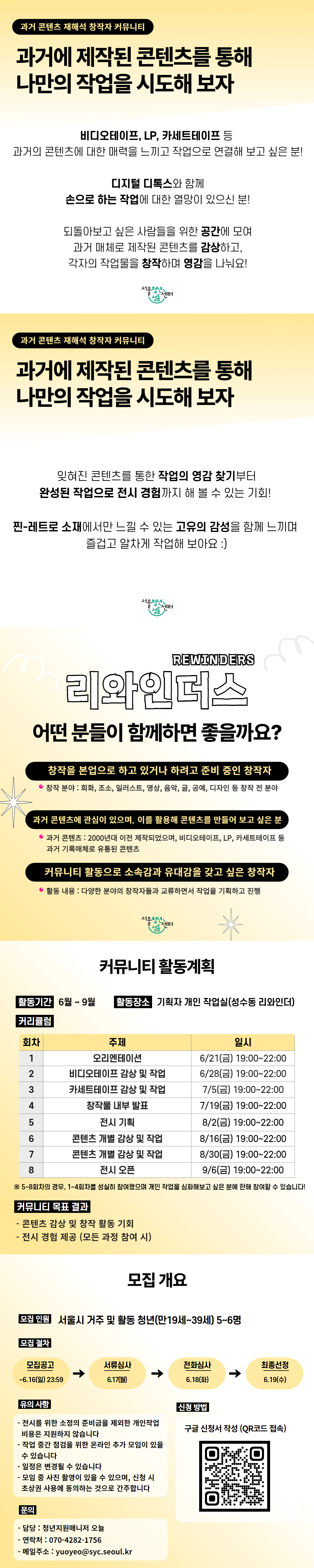 커뮤니티 활동으로 소속감과 유대감을 갖고 싶은 창작자 서울시 거주 및 활동 청년 : 만 19세 ~ 만 39세