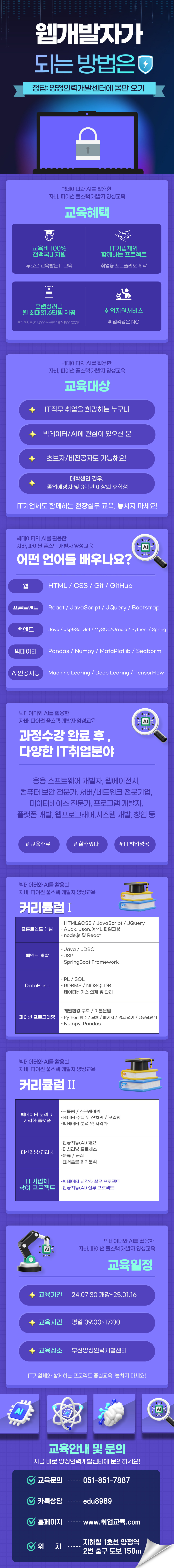 - 교육장소 : 고용노동부 지정 우수훈련기관 양정인력개발센터