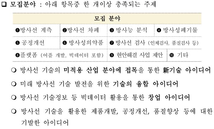 - 방사선 및 방사성동위원소를 활용하여 융ㆍ복합 아이디어를 보유한 자