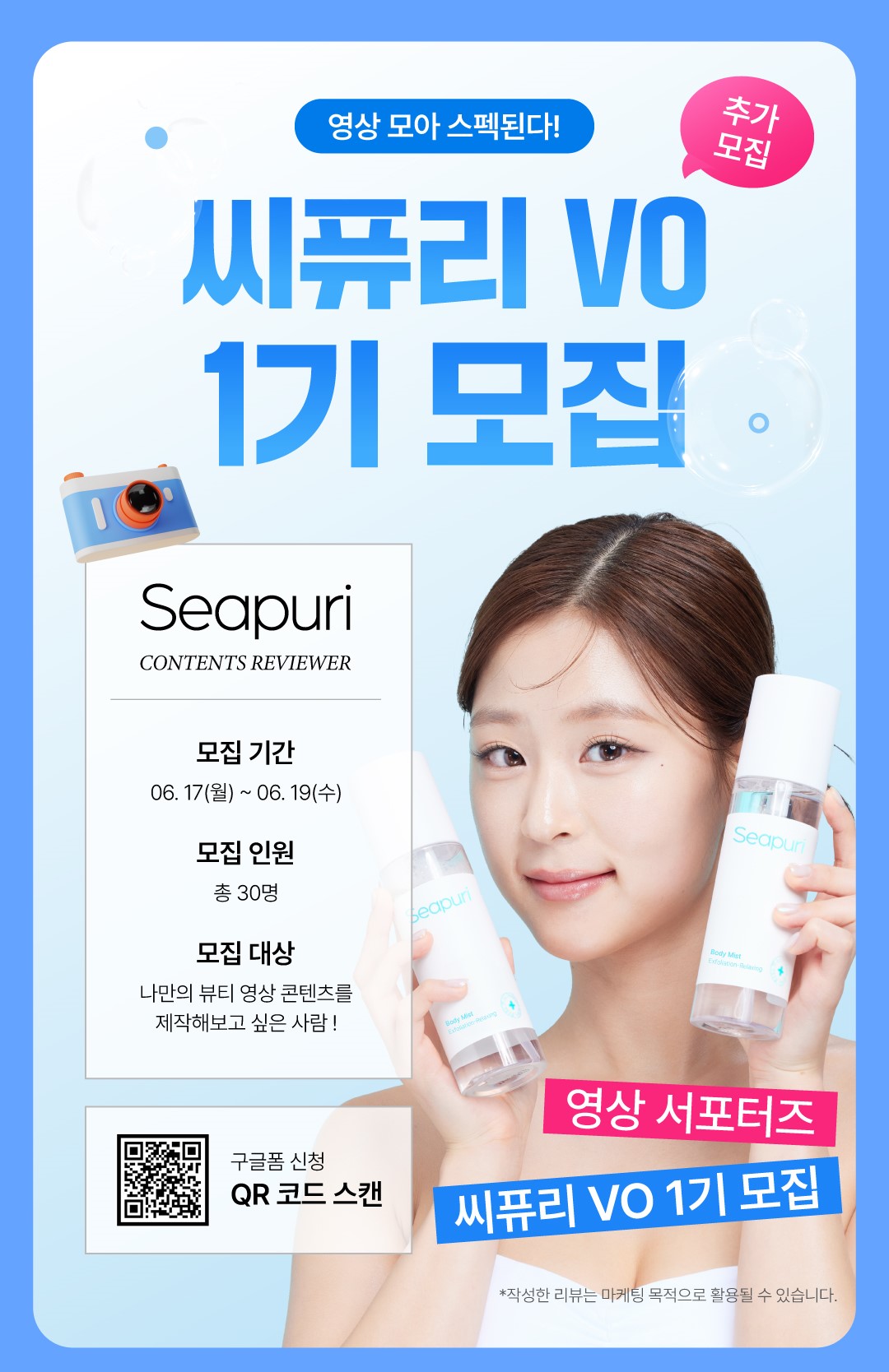 우수 활동자 2인 : 씨퓨리 신제품 무료 증정 (스피아 스크럽 오일)