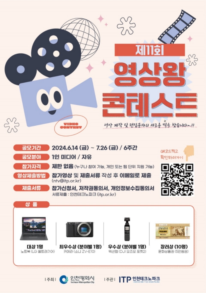 인천광역시가 주최하고 (재)인천테크노파크가 주관하는 제11회 영상왕콘테스트를 여러분들과