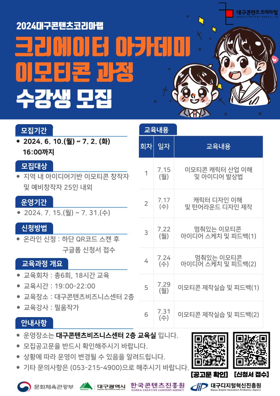 ⭐2024년 대구콘텐츠코리아랩 크리에이터 아카데미 이모티콘 과정 참가자 모집⭐