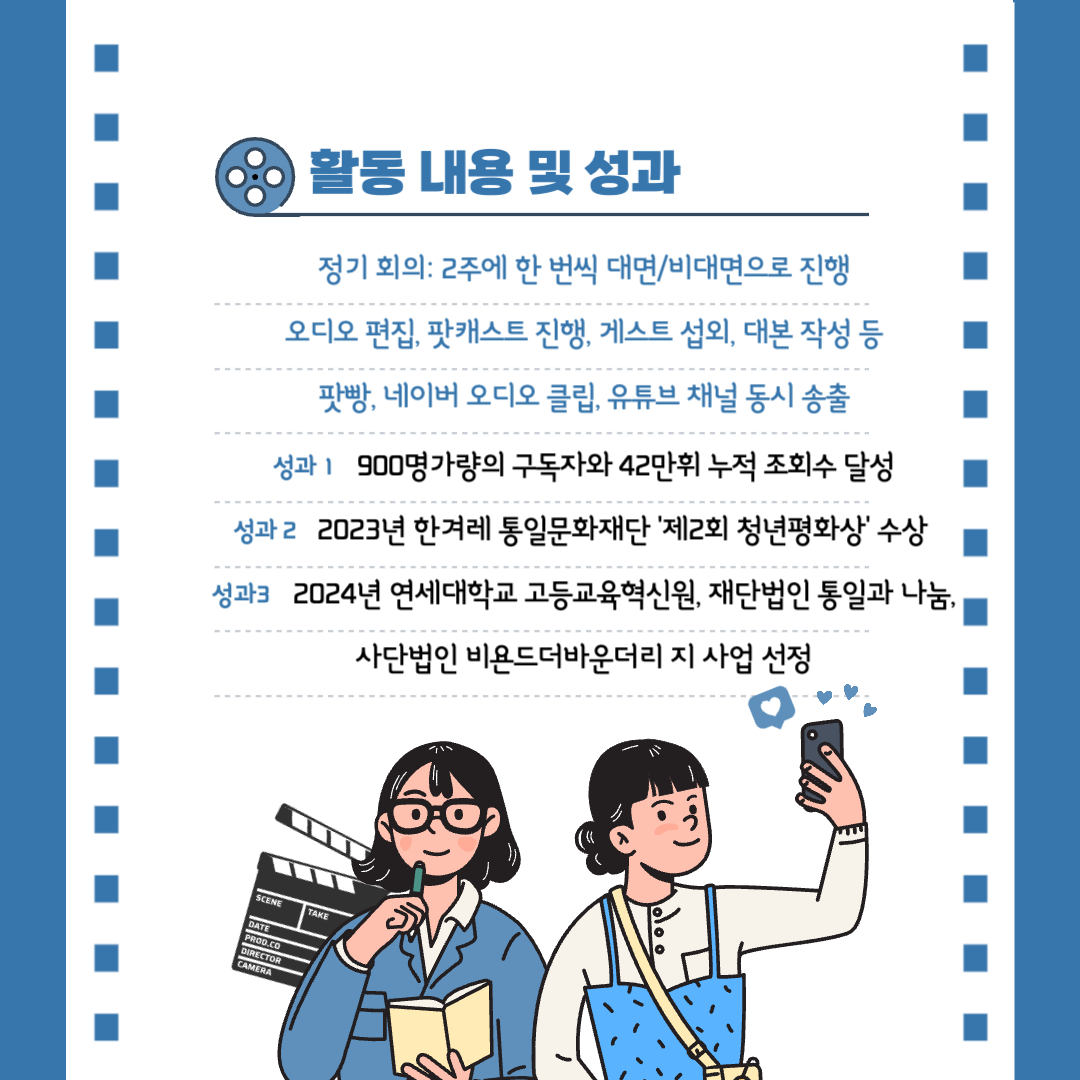 *모든 수습부원은 최종 선발 분야와 상관없이 정규 팟캐스트 오디오 편집에 참여합니다. 수습부원 선발 후 편집 교육이 있으니, 편집을 배우고 싶은 분들 모두 환영합니다.