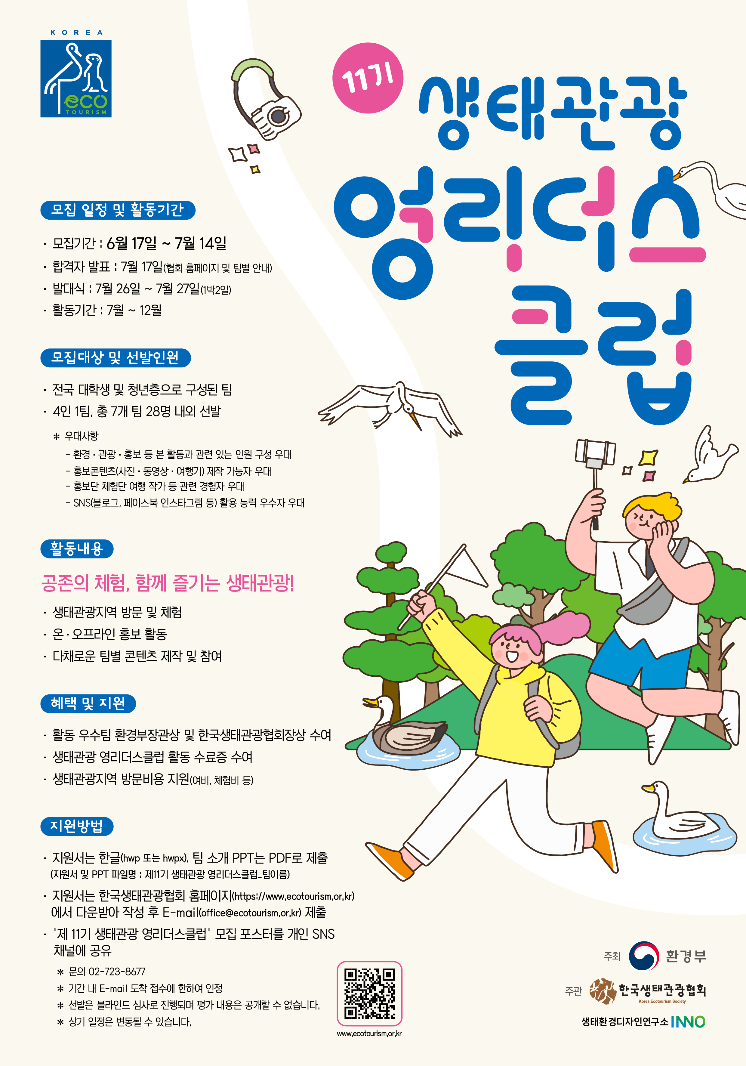 대학생 및 청년들을 대상으로 ‘제11기 생태관광 영리더스클럽’을 모집합니다.