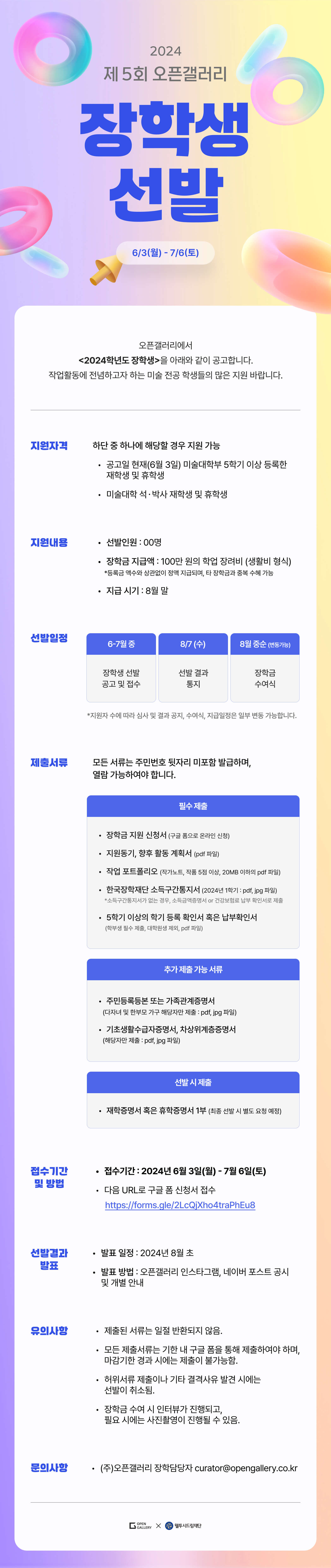 2024년 제 5회 오픈갤러리 장학생 선발 안내