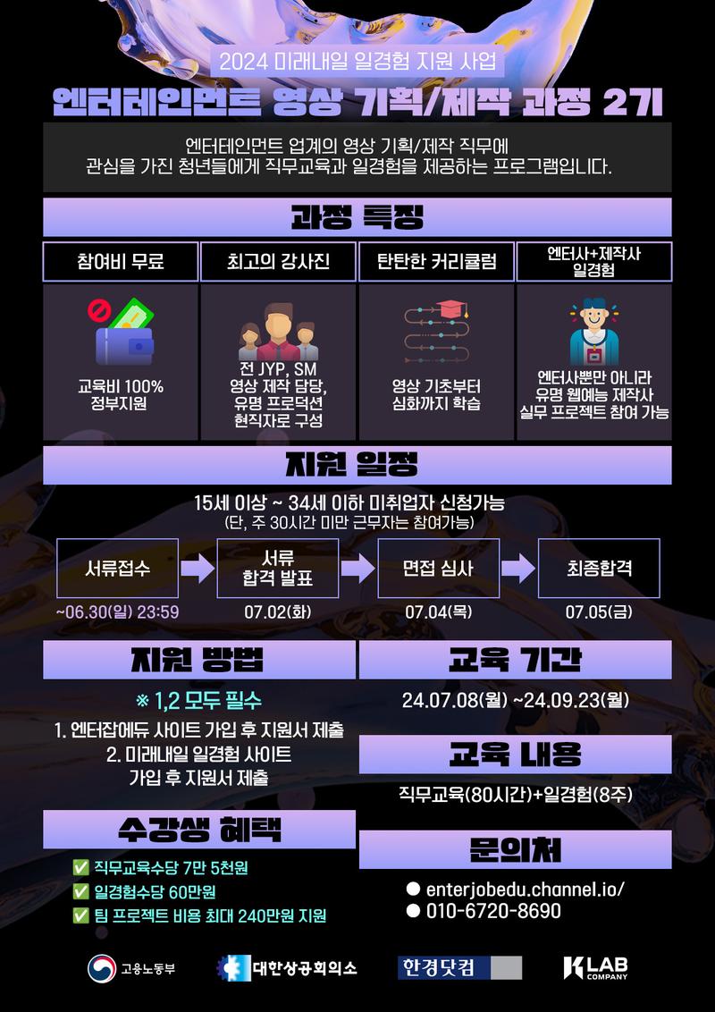 15세 이상~34세 이하 엔터 영상 직무에 관심있는 누구나 신청가능!