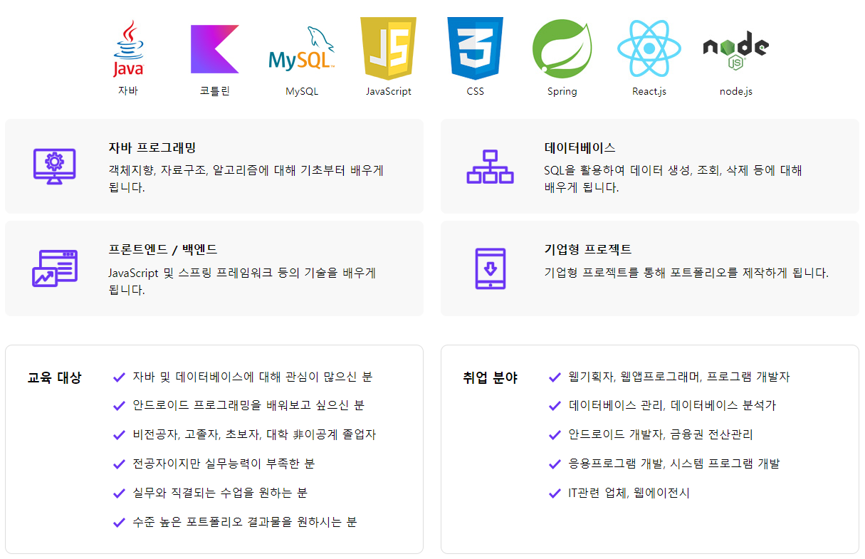 꼭 풀스택 개발자 국비지원이 아니어도 클라우드, 정보보안, 웹디자인, 프론트엔드,