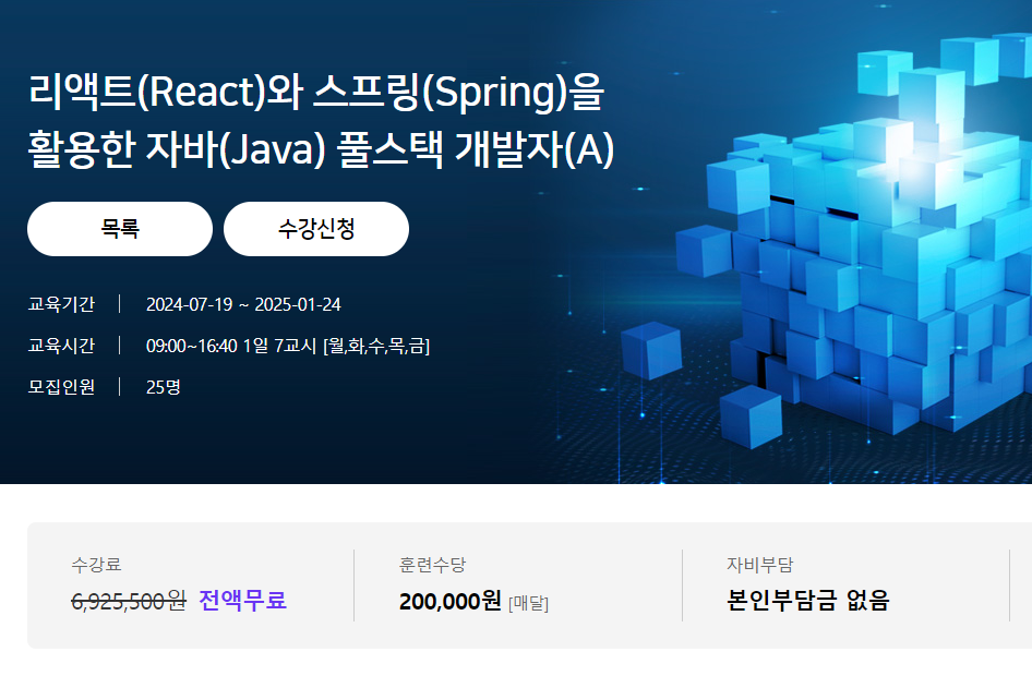 100% 수강료 지원되며, 사전지식을 강요하지 않습니다.