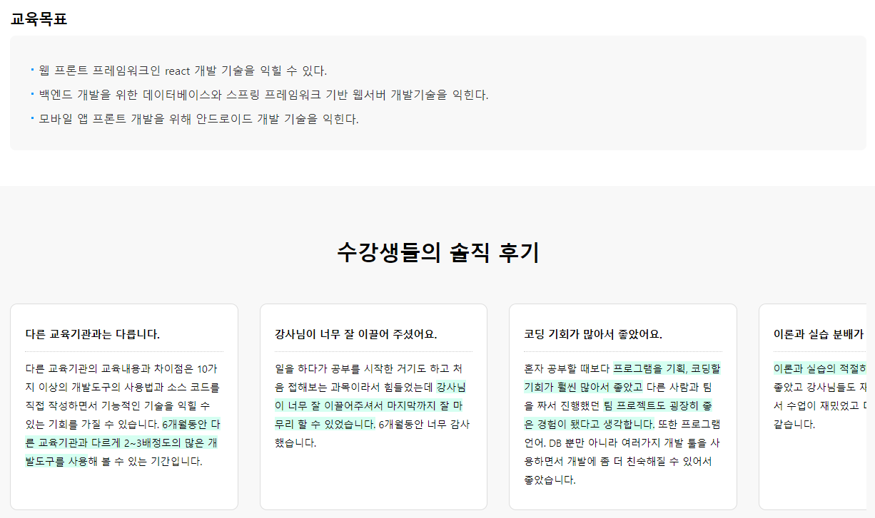 <부산IT교육센터 리액트 스프링 활용 풀스택 개발자 부트캠프 국비지원 취업교육 이전기수 실제후기>