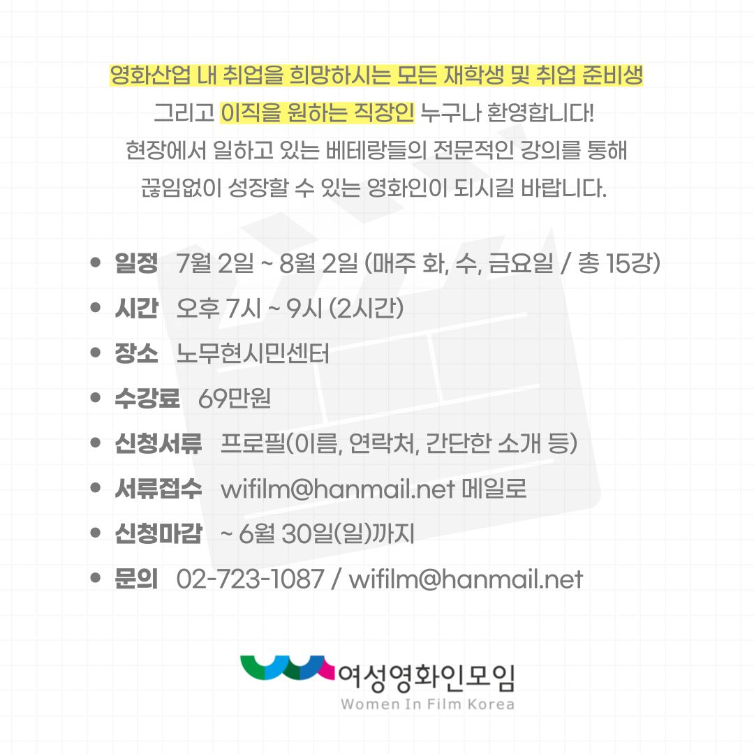 여성영화인모임 홈페이지(www.wifilm.com) - NOTICE - 공지사항에서 확인 가능합니다.