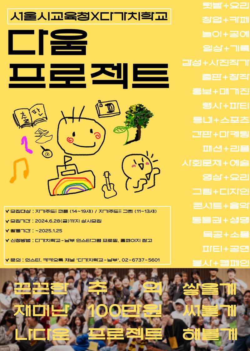 문의 : 인스타그램 DM, 카카오톡 채널 '다가치학교 남부', 02-6737-5601