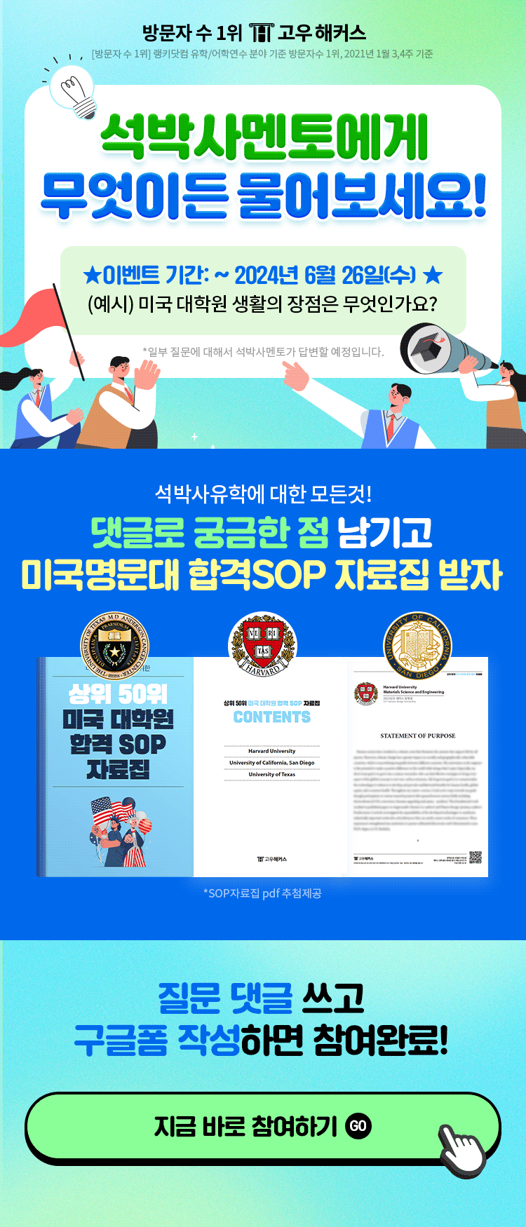 석박사 유학에 대한 궁금증을 댓글로 남기고, 구글폼 제출하면 참여 완료!!