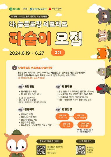 나에서 시작되는 골목 플로깅 기부 캠페인 - 나눔플로깅 서포터즈 따숨이 2기를 모집합니다.