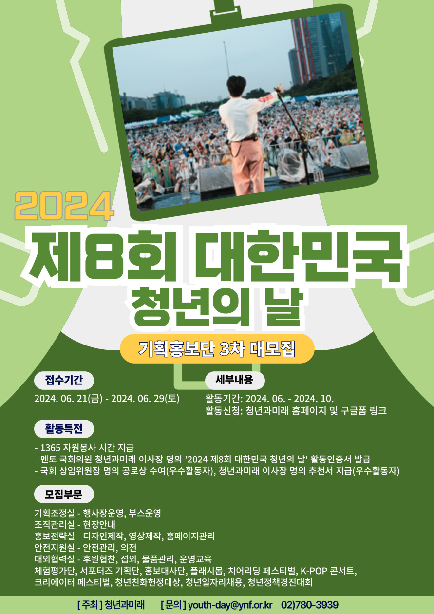 ⭐️ 「2024 제8회 대한민국 청년의 날」 기획홍보단 3차 대모집! ⭐️