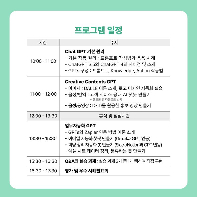 생성AI와 GPT기술에 대한 이론과 실습과정을 교육합니다!