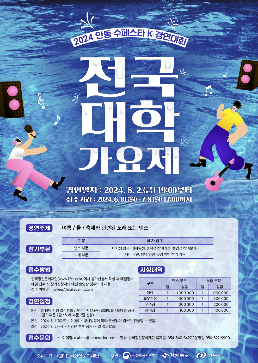 예선 : 총 14팀 선정 결선진출 / 2024. 7. 12.(금) 결과발표 / 비대면 심사 (댄스 부문 7팀 / 노래 부문 7팀 선정)