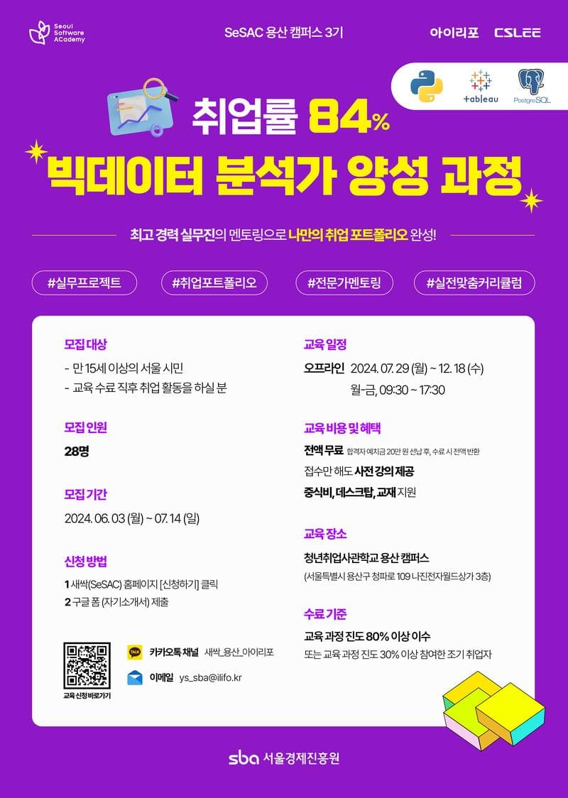 🌱 교육비 전액 무료! 새싹(SeSAC) 용산 3기 빅데이터 분석가 양성 과정