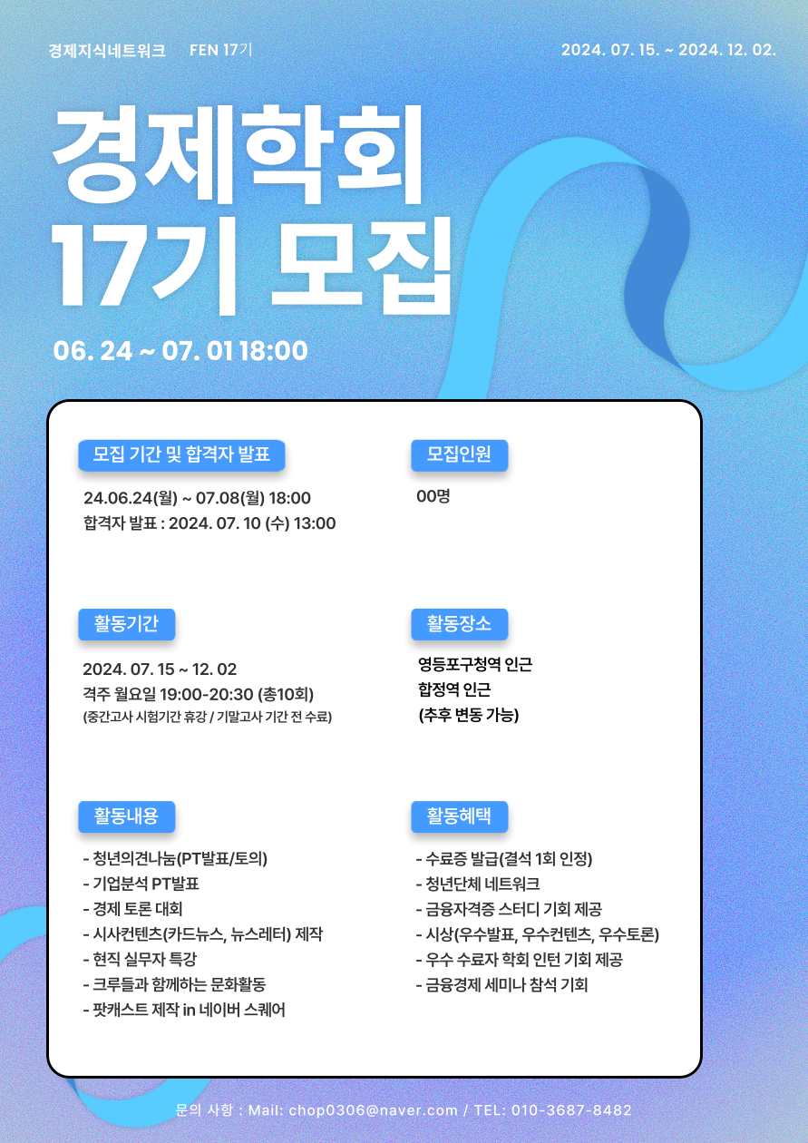 📌경제학회 FEN에서 17기 학회원을 모집합니다.