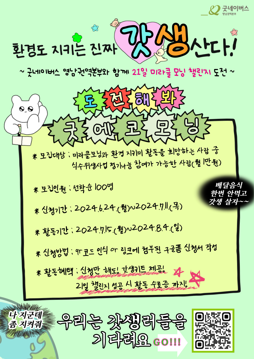 - 굿네이버스와 함께 환경을 생각하는 21일간의 미라클 모닝 챌린지에 도전하세요!