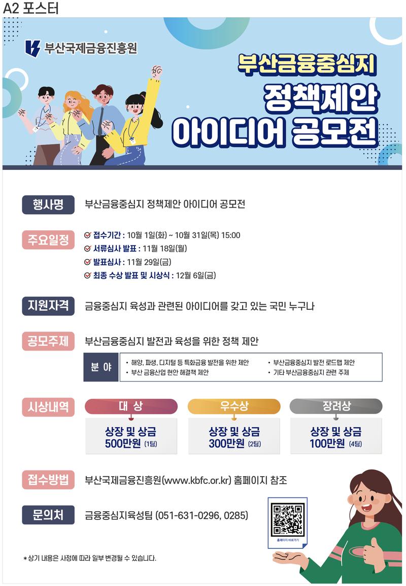 부산국제금융진흥원에서는 부산금융중심지 활성화를 도모하고자 부산금융중심지 정책 제안 아이디어 공모전을 개최하오니 많은 관심과 참여 부탁드립니다